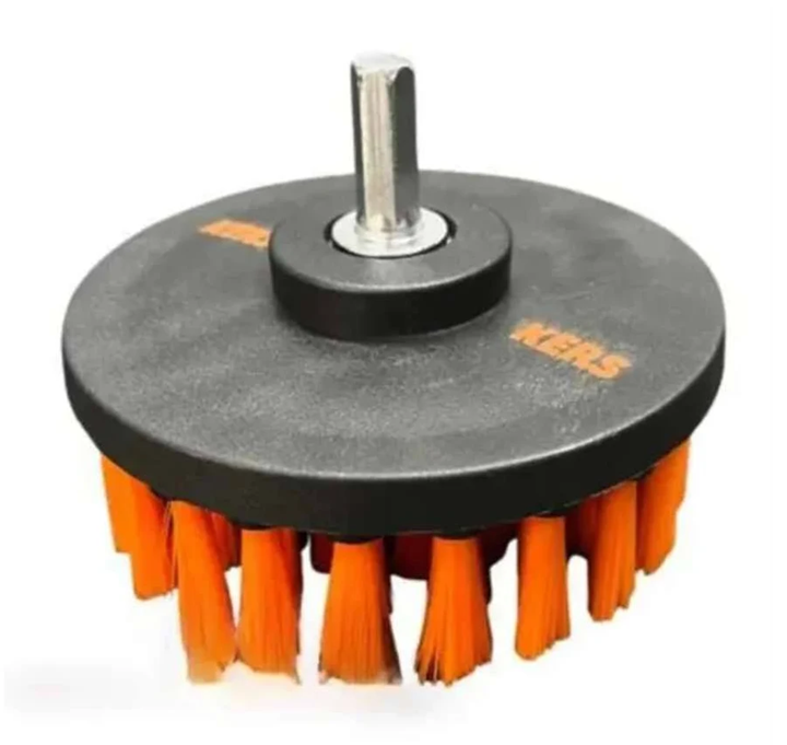 Escova Kers de Cerdas Laranja Macia é uma escova com rosca 14mm para ser utilizada em Politriz Rotativa de mesma rosca, acompanha parafuso adaptador para ser acoplada em furadeiras e parafusadeiras, sendo uma excelente ferramenta para o uso em superfícies que necessitam de esfregação mais leve e uma limpeza menos agressiva.