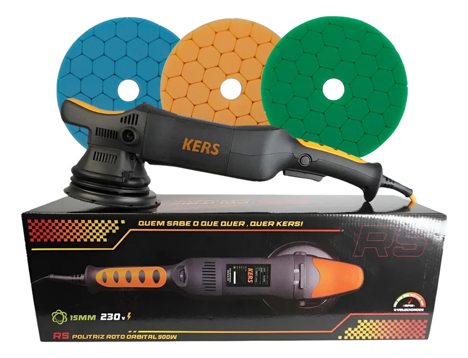 Politriz Roto Orbital RS 15mm 900W 220V Kers roto orbital com oscilação de 15mm, sendo mais eficiente que as roto orbitais com órbita 8mm, e com um trabalho mais suave do que as roto orbitais com órbita 21mm.